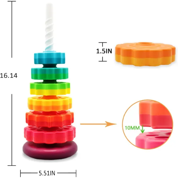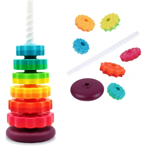 اللعبة بتساعد الطفل يطوّر التنسيق بين العين واليد ويحسّن مهارات الحركة الدقيقة أثناء تركيب الحلقات.