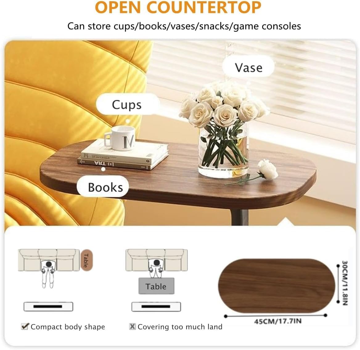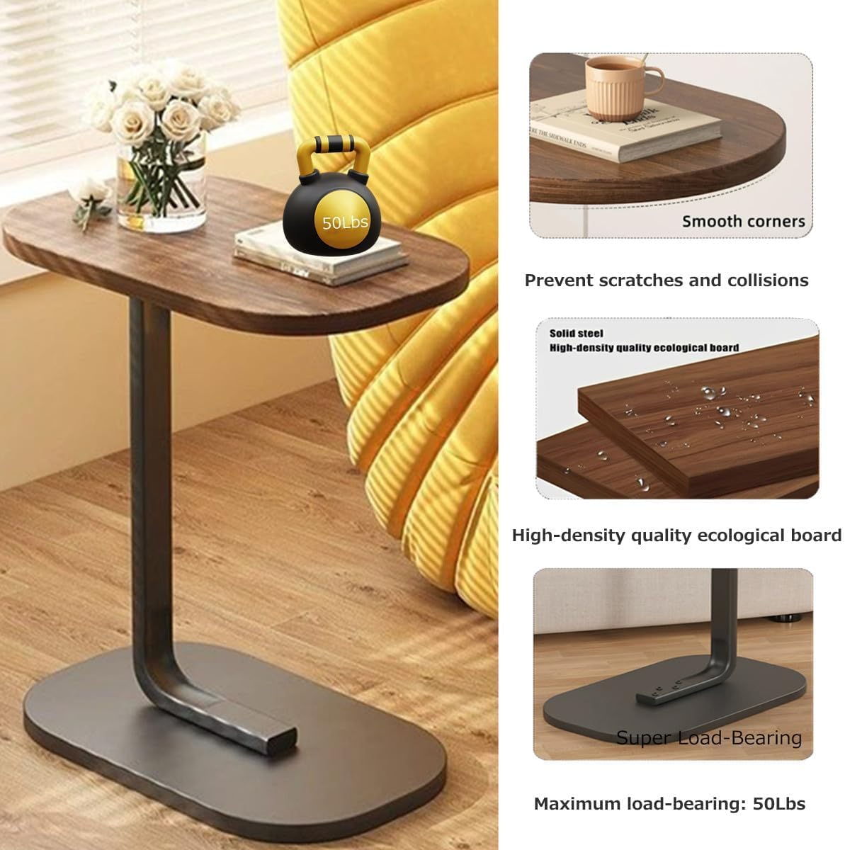ترابيزة C Shape بتدخل تحت الكنبة أو السرير بسهولة، عشان تخلي يومك أسهل وأريح.